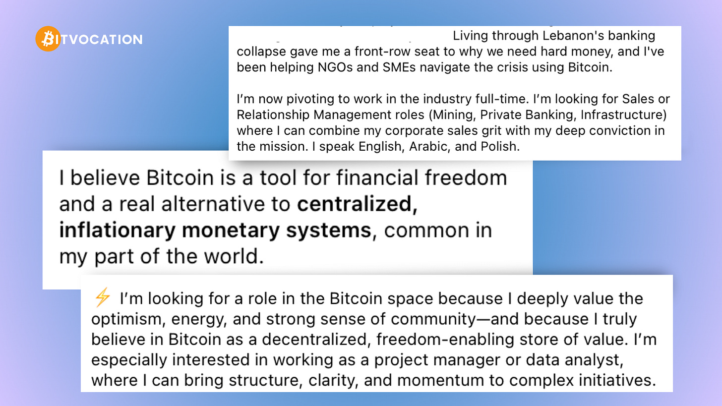 That’s why Bitvocation is building a Strategic Bitcoiners Reserve: a high-signal talent pool and a practical first point of contact for Bitcoin startups when they’re hiring.