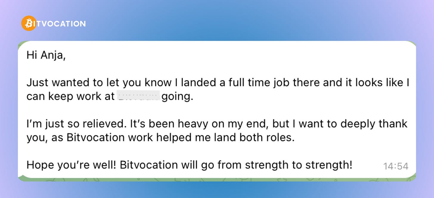 And if you’re a Bitcoiner in a fiat career, quietly building skills and conviction and wondering where you’d actually belong —