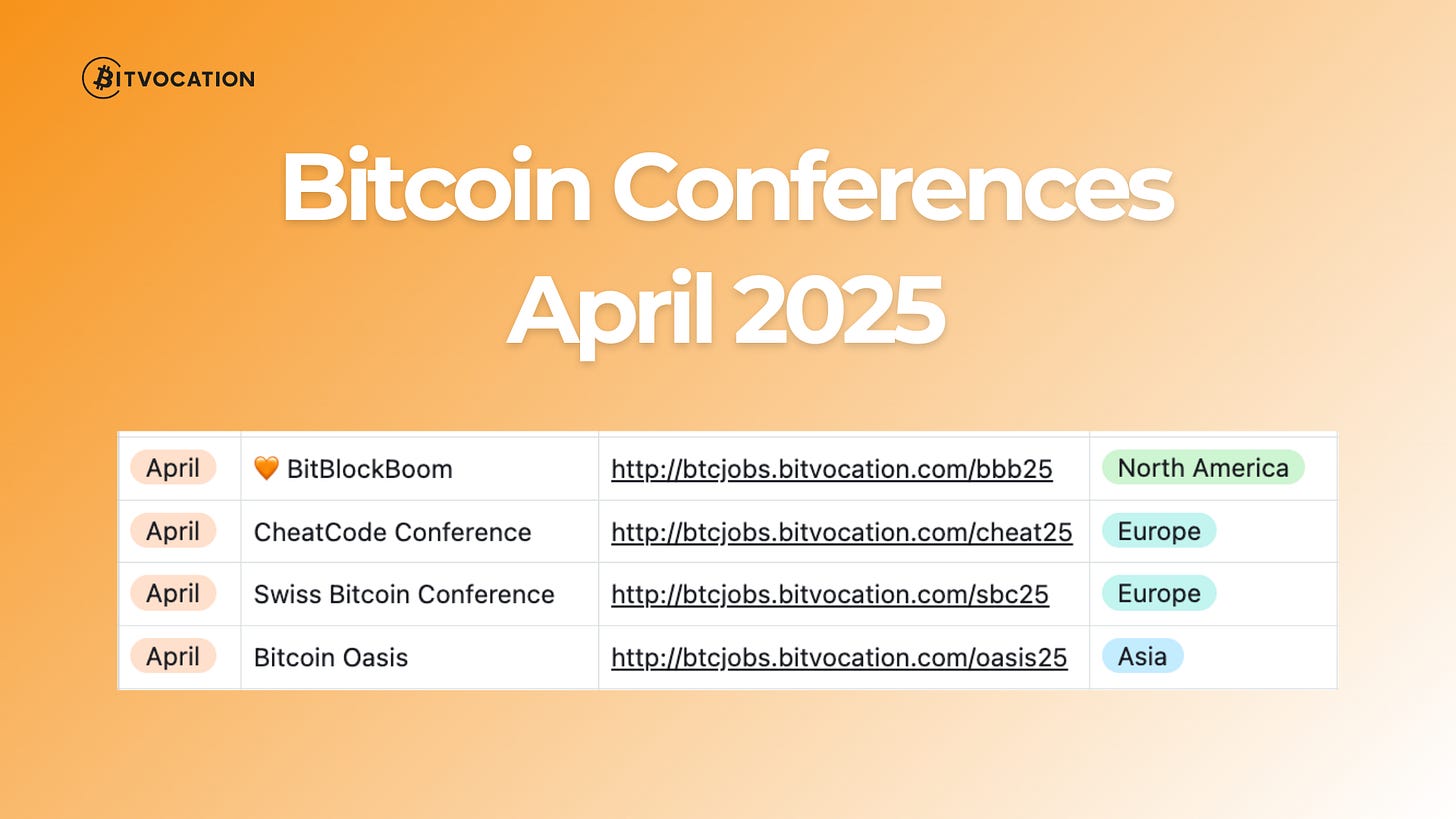 Here’s your quick guide to Bitcoin events lighting up the globe this month! Four conferences are happening across Europe, Asia, and North America. Plus, you can still snag a discount for BitBlockBoom in Dallas using our promo code BITVOCATION.