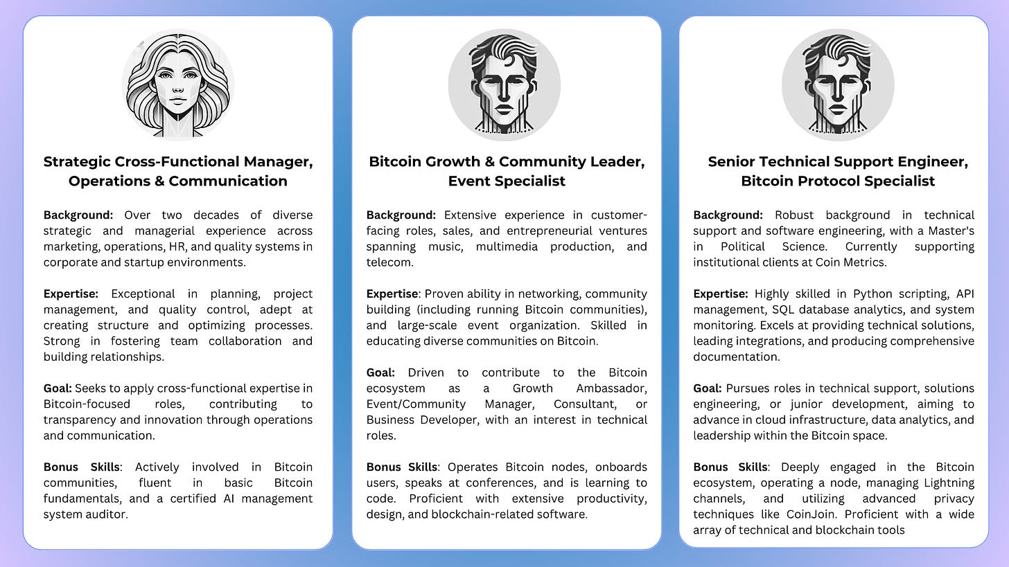 We have incredible Bitcoin professionals in our talent pool. Here’s a selection: