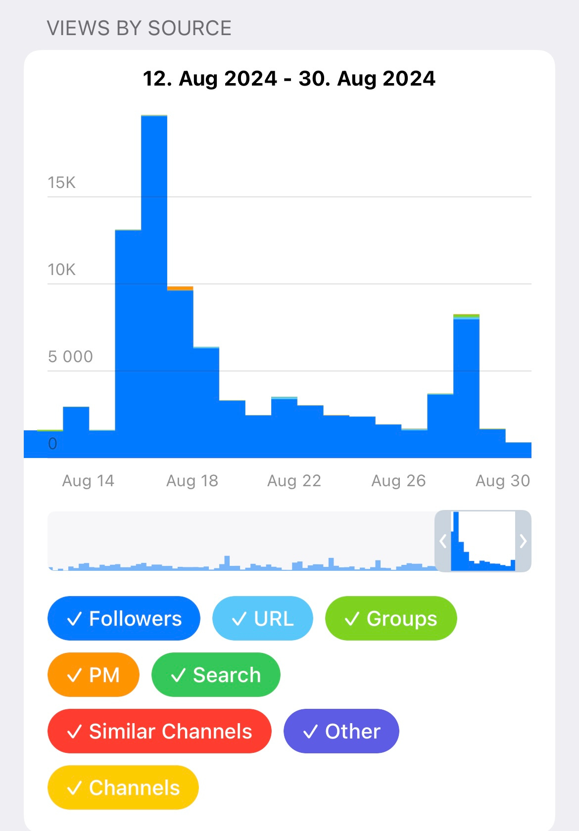 Our Telegram channel grows by around 10% per month.