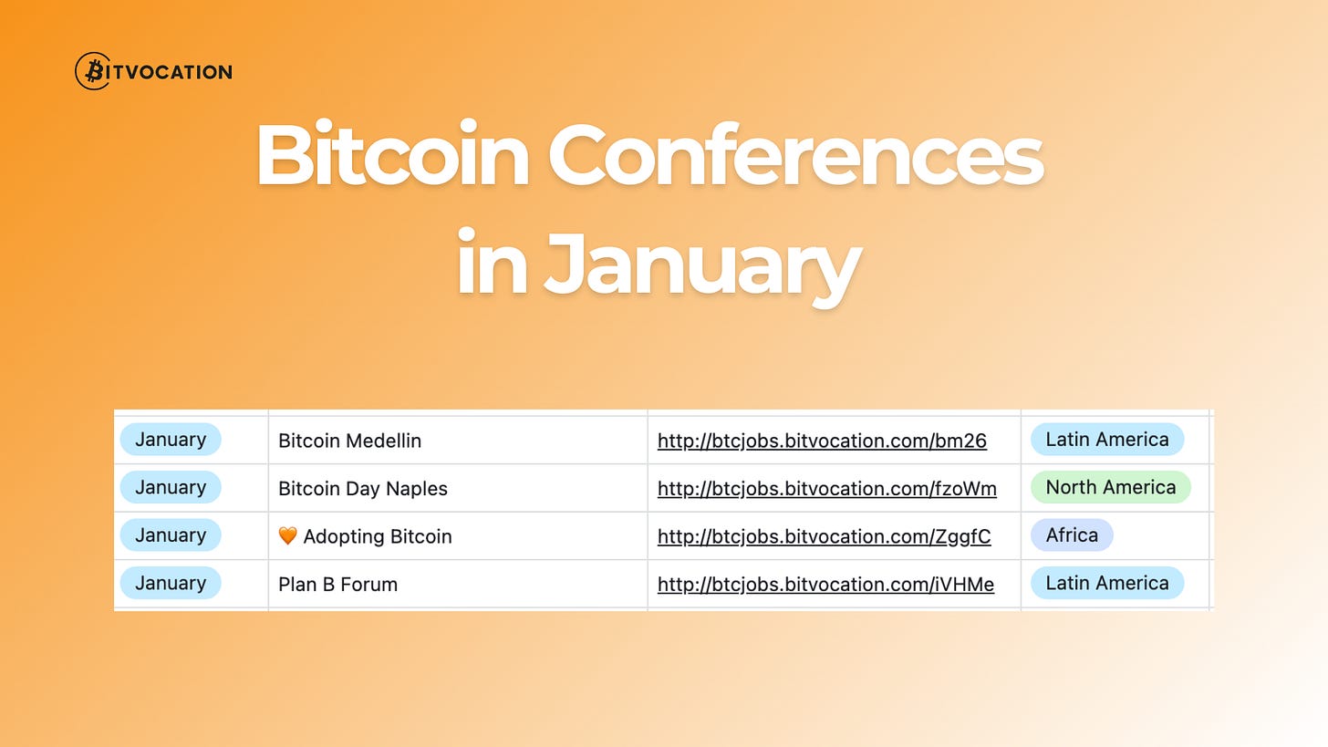 We are in the process of updating our complete overview of Bitcoin conferences around the world, and we have lots more discounts coming from January 1st. So bookmark our Airtable, and always check it before you buy your tickets! 👇 (The list will probably triple in size shortly!)