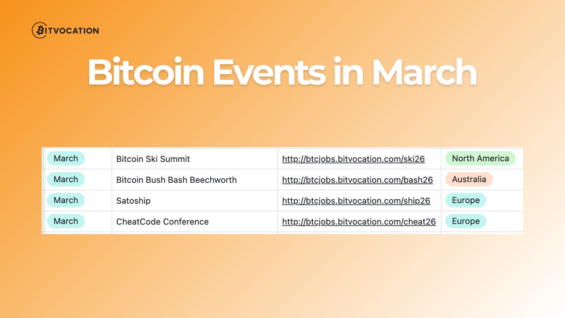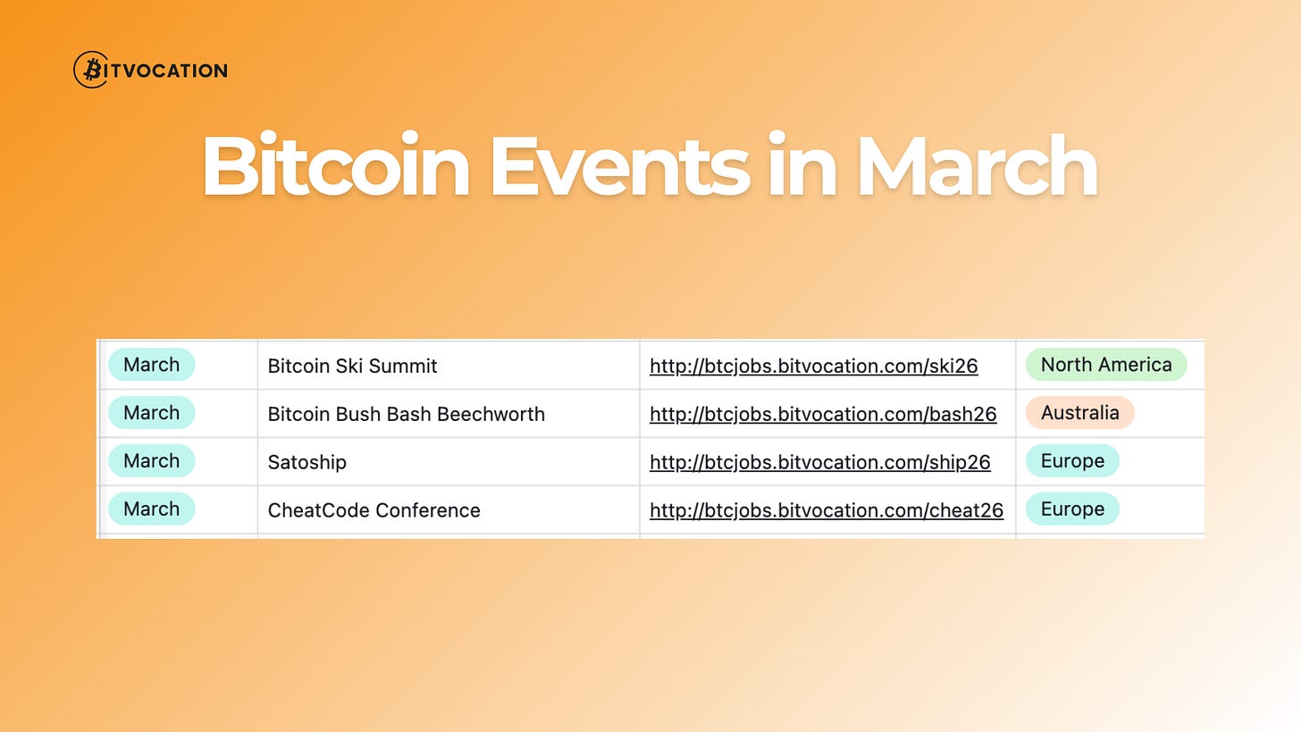 March Bitcoin Conferences (+ Want to Volunteer in May?)