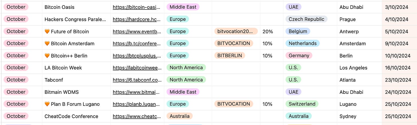 Attend the best Bitcoin conferences in October 2024 with exclusive discounts! Discover premier events through Bitvocation's curated conference overview and pave the way to your first job in Bitcoin!