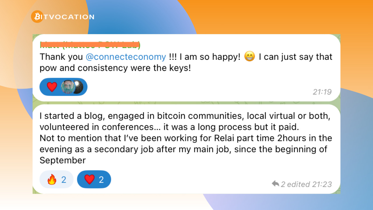 Finding work in Bitcoin can be challenging, even with the right skills and experience. Personal connections, recommendations, and endorsements are crucial in establishing trust and credibility in our community.