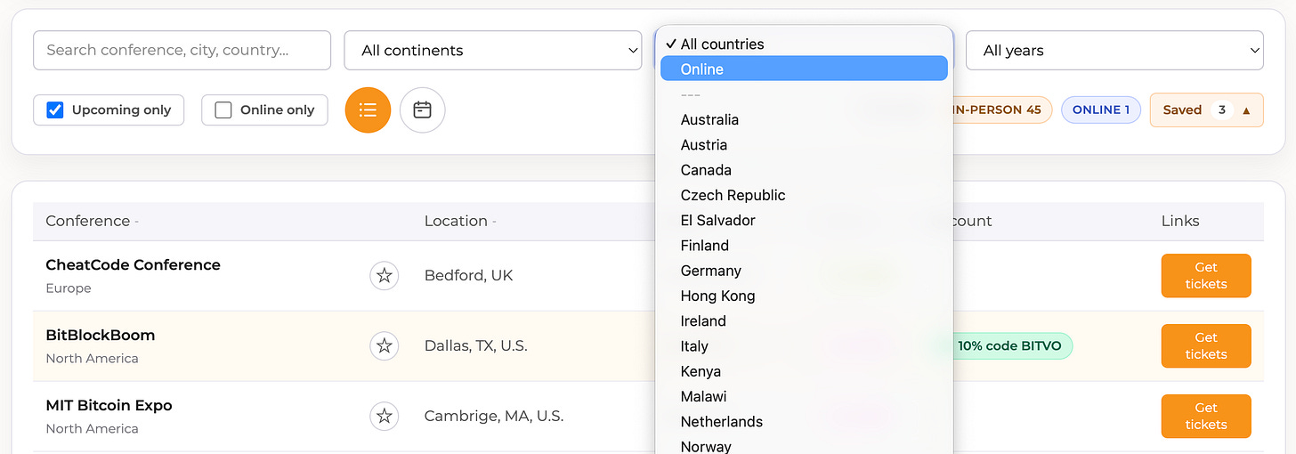 We’re partnering with several event organisers to offer exclusive discounts to the Bitvocation community. When a discount is available, you’ll see the code displayed right next to the event — no hunting around, no guessing.