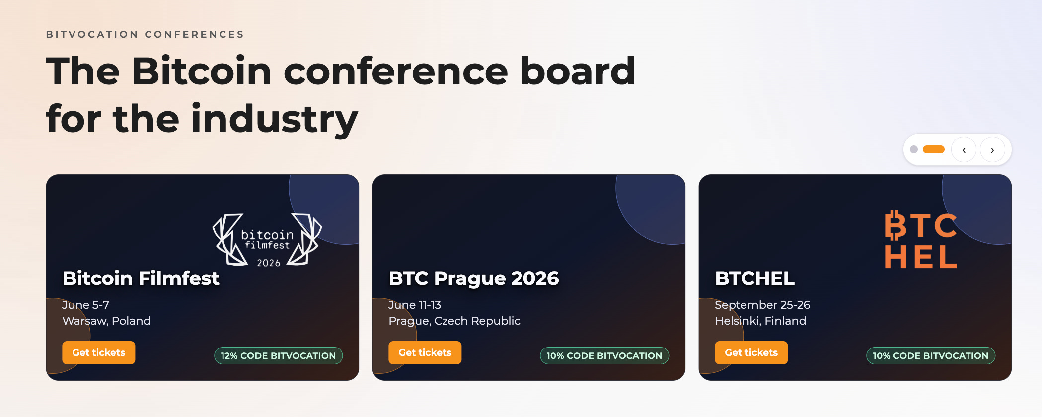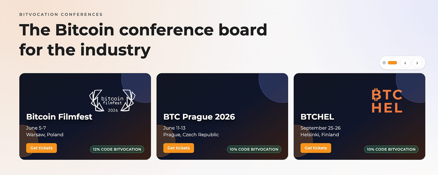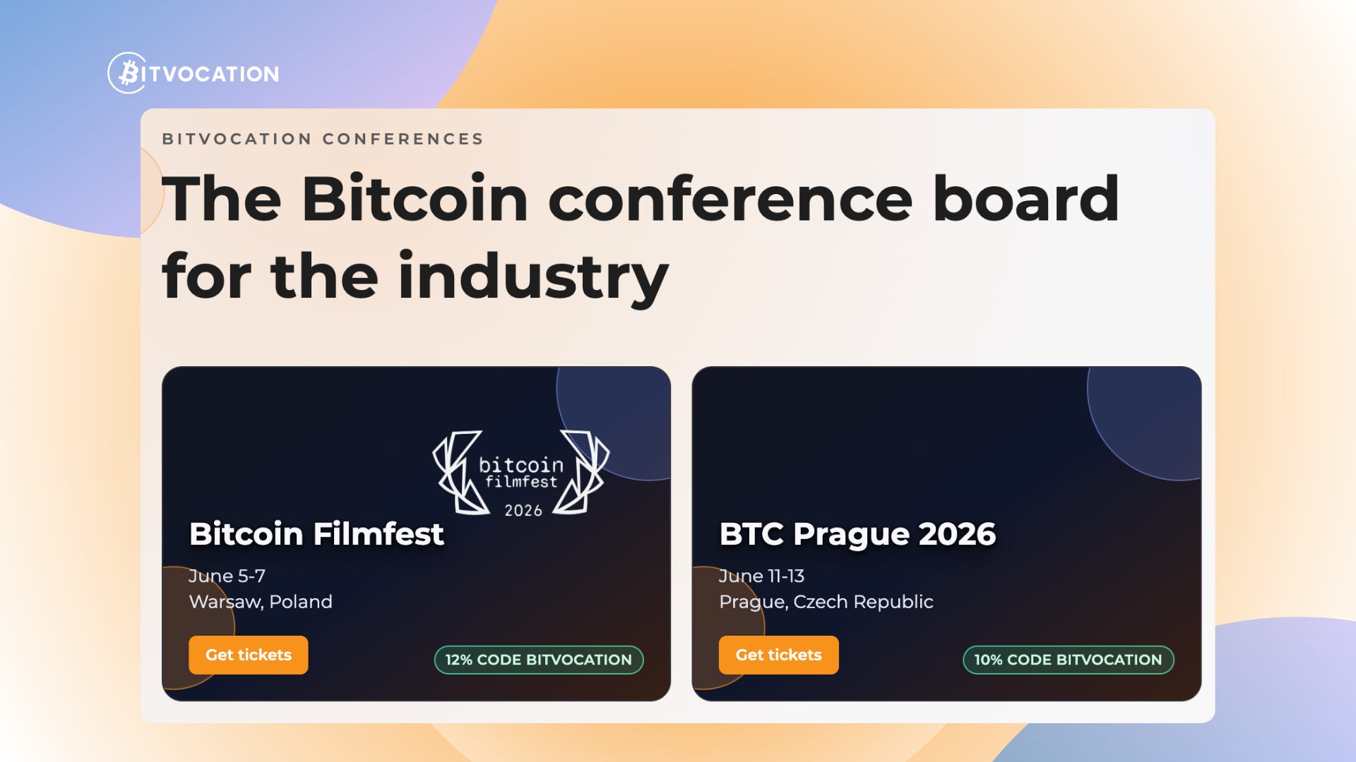 If you’re organizing an event and want to be listed now — or offer an exclusive discount to our community — reach out. We’d love to feature you and make this board the most comprehensive overview of Bitcoin-only events around the world.
